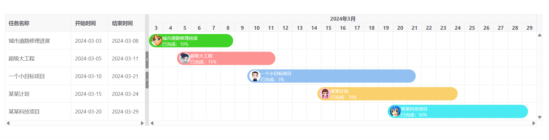 vue 常用的 gantt 甘特图组件推荐