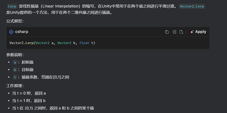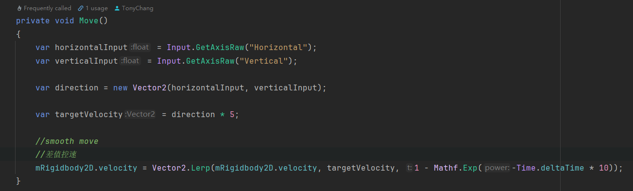 移动中常用的平滑曲线函数: 在代码控制2D人物移动时候,为了保证人物在停止停止移动时候出现速度瞬变,卡顿问题,常常使用一个平滑函数,来使得速度按照函数的平滑曲线来逼近目标值。 先看代码: 一个在Update中调用的移动函数。 首 ...