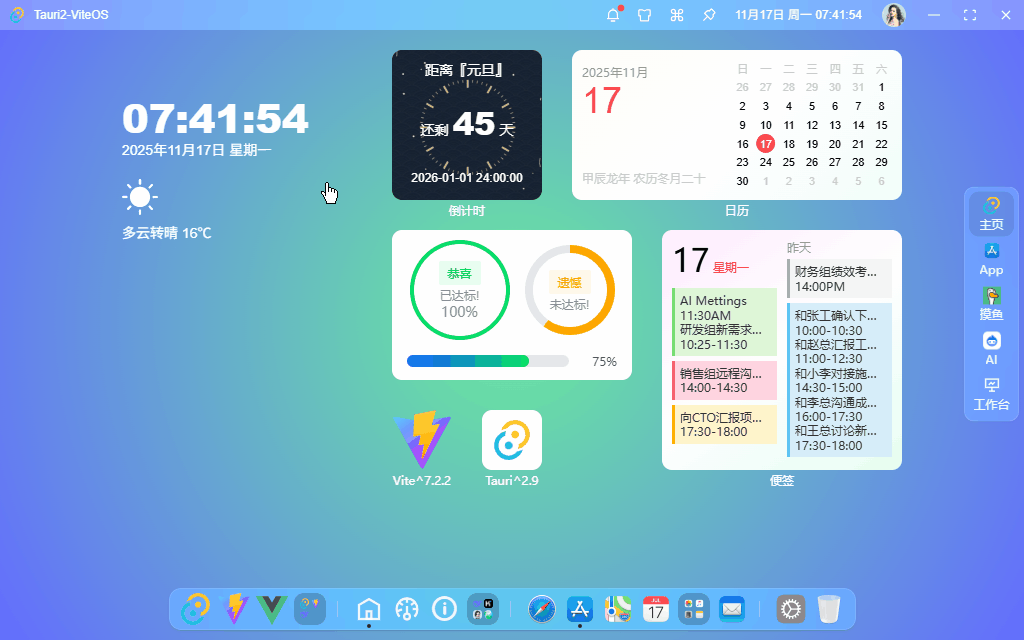 Tauri2.9+Vue3电脑端OS系统|vite7+tauri2+arcoDesign桌面os后台模板