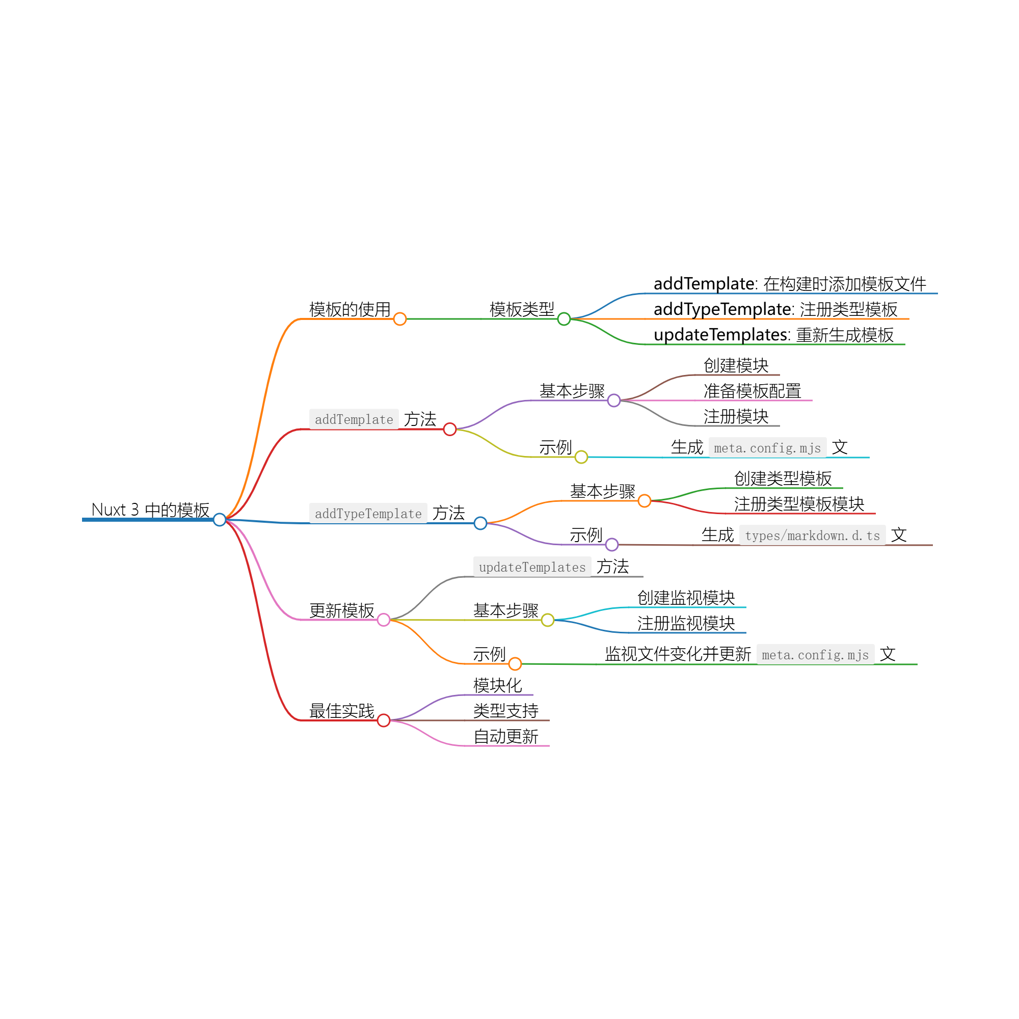 title: Nuxt Kit 中的模板处理 date: 2024/9/20 updated: 2024/9/20 author: cmdragon excerpt: 摘要:本文详细介绍了在Nuxt 3框架中,使用Nuxt Kit进行模板处理的方法,包括理解模板基本概念、使用addTemplate动态生成文件、应用addTy ...
