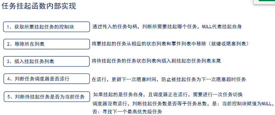 任务的挂起与恢复的API函数介绍 1、挂起任务类似暂停,可恢复; 删除任务,无法恢复 2、恢复是恢复被挂起任务 3、带FromISR后缀是在中断函数中专用的API函数 任务挂起函数介绍 void vTaskSuspend(TaskHandle_t xTaskToSuspend) 此函数用 ...