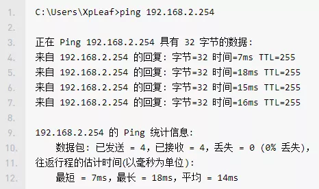我们可以在自己的电脑上自己ping网关的地址,看是否有响应
