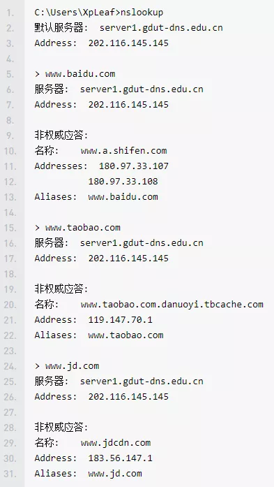 - 在不考虑DNS服务器是否智能的前提下,你可以根据回显IP地址速度的快慢来大致判断DNS服务器的优劣情况
