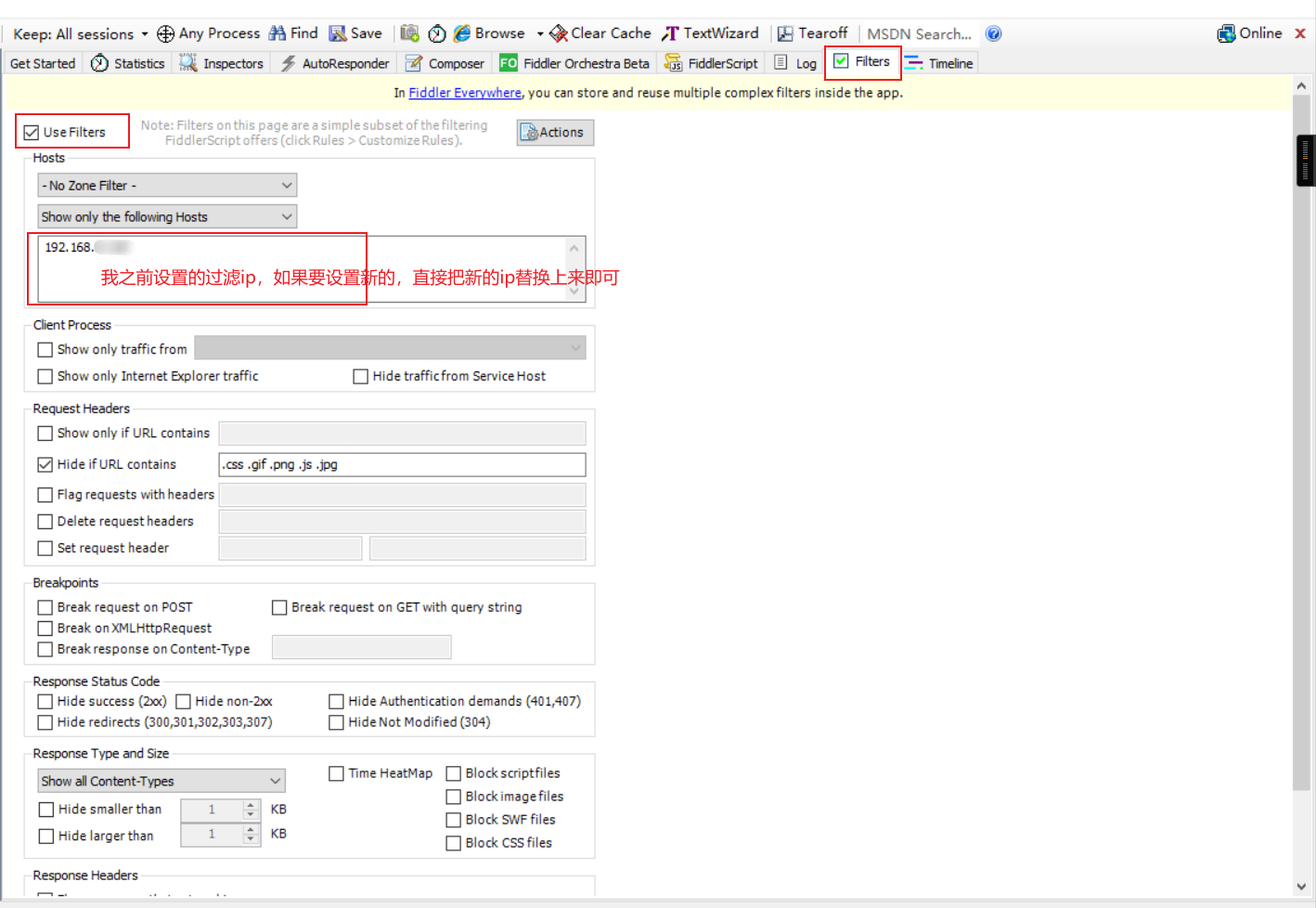 1、设置了过滤: fiddler中支持我们设置过滤条件,这样fiddler就不会抓取所有的请求,比如我们要抓取一个指定ip地址的请求,就可以设置对应的过滤信息,但是结束 ...