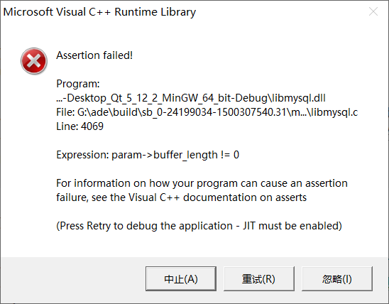 个人Qt项目总结——数据库查询断言问题 问题: [*]当我使用MySQL数据库的查询操作时, [*]如果查询的数据在数据库中不存在,那么Qt会直接被干崩溃 [*]但是?为 ...