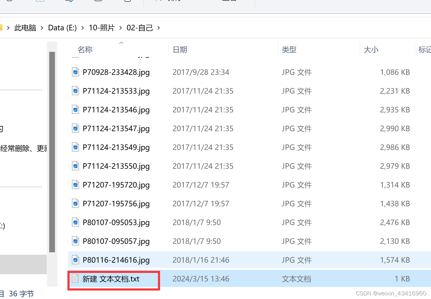进入文件夹,也就是存放了我照片的这个,目录就是上面截图那里:E:\10-照片\02-自己。