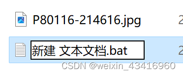 2、保存、退出,修改文件名后缀【txt】为【bat】