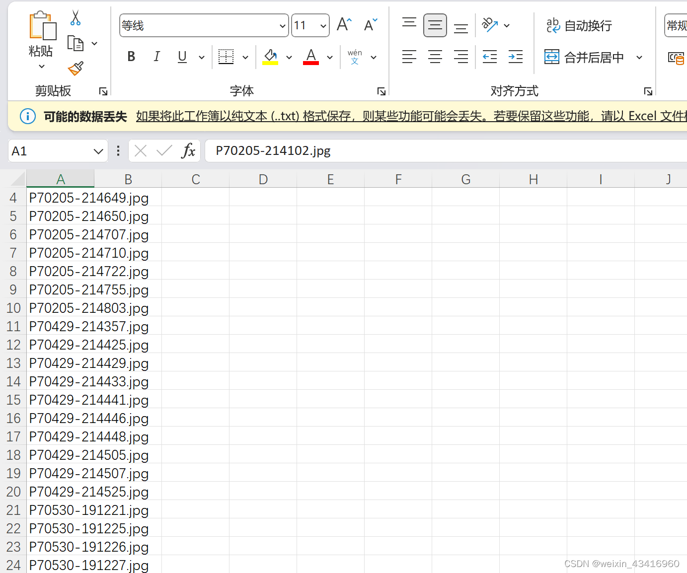这里A列是bat脚本生成的那一列,B列就是我们要改成的新的名字: