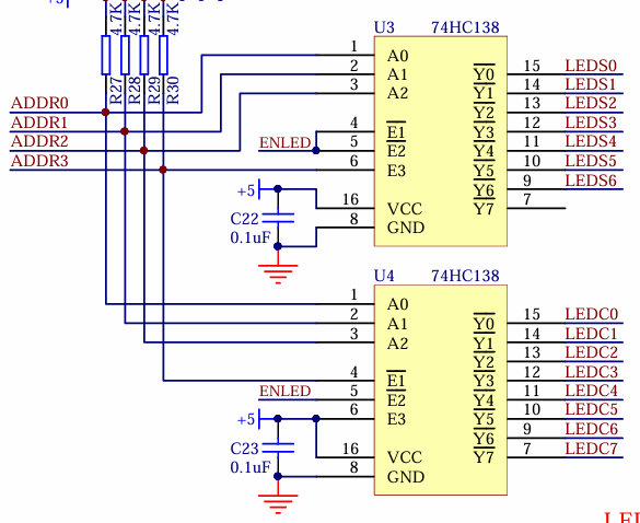 综上:ADDR0为低电平,ADDR1为低电平,ADDR2为低电平,ADDR3为低电平,ENLED为低电平