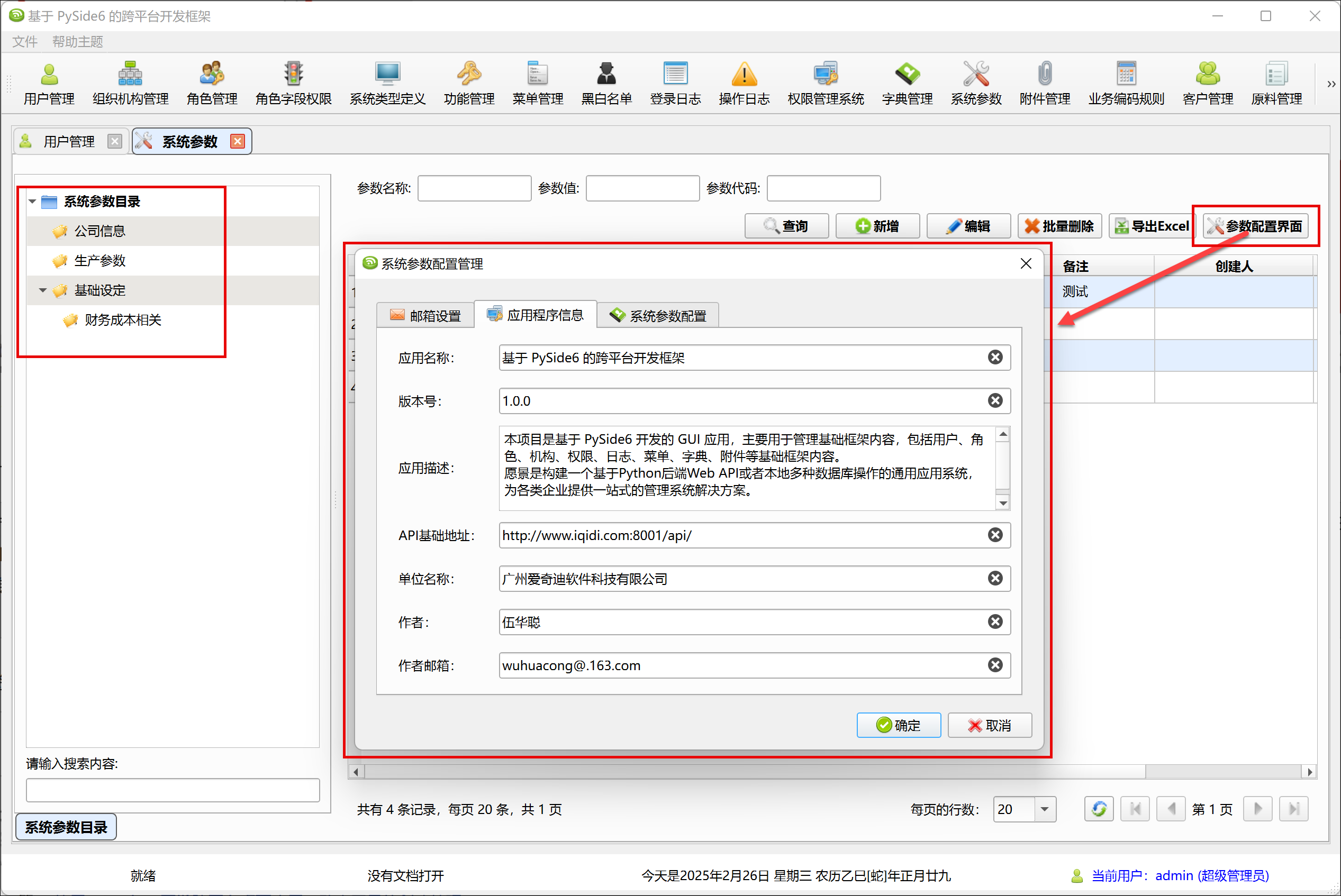 和WxPython的跨平台界面效果一样,该框架也是一个多文档管理界面,其中用户管理界面如下所示。