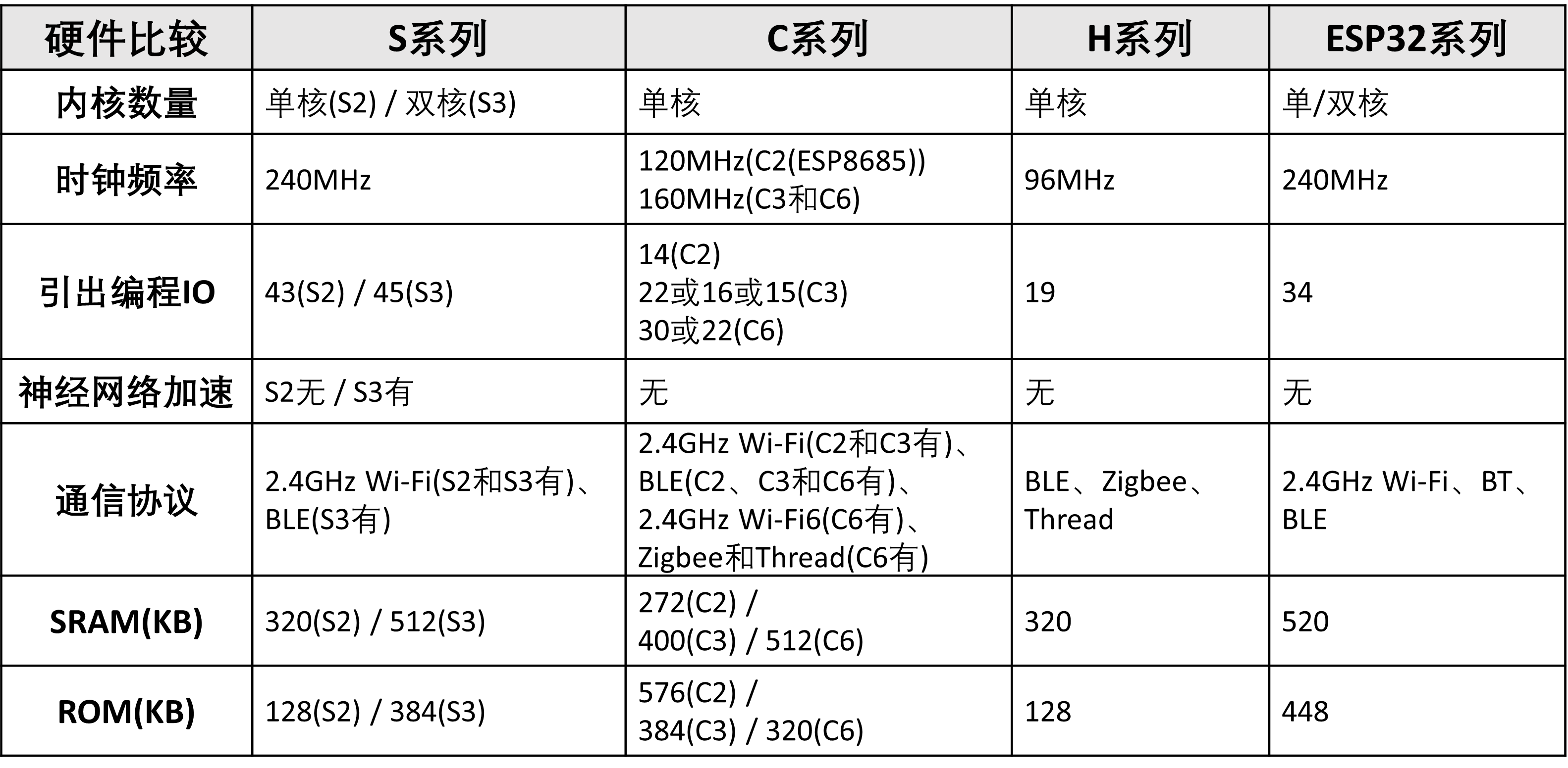 综上所述,乐鑫推出的各系列MCU在硬件方面各有特点,选择哪个系列取决于具体的应用场景和需求。对于需要高性能、多核处理和神经网络加速的应用场景,S系列可能是更好的选择;而对于简单的物联网应用场景,C系列或H系列可能更合适。