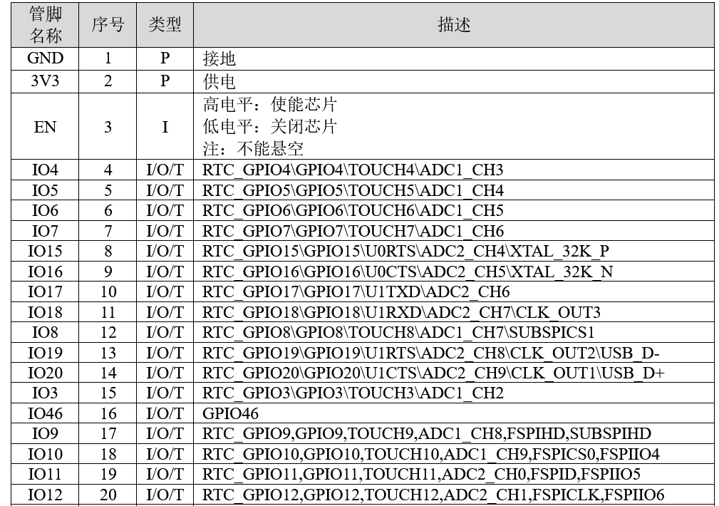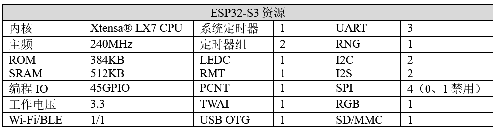 下面来看看ESP32-S3具体的内部资源,如下表所示。