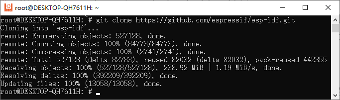 该程序是可以查看且可被修改,在搭建ESP-IDF环境完成后,可在esp-idf\components\bootloader/subproject/main/路径下找到bootloader_start.c文件,此文件就是二级引导程序启动处。首先我们克隆ESP-IDF库,克隆过程如下所示。