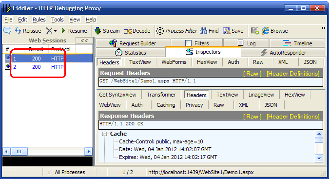 复制代码 注意:上面代码中最关键的一行代码为:- [/code]正是由于使用了这个OutputCache指令,最后才会输出上面那几个响应头,用来告诉浏览器此页面需要缓存10秒钟。