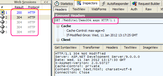 注意:如果使用OutputCache指令再配合OutputCache Module的使用,可以实现304的效果。