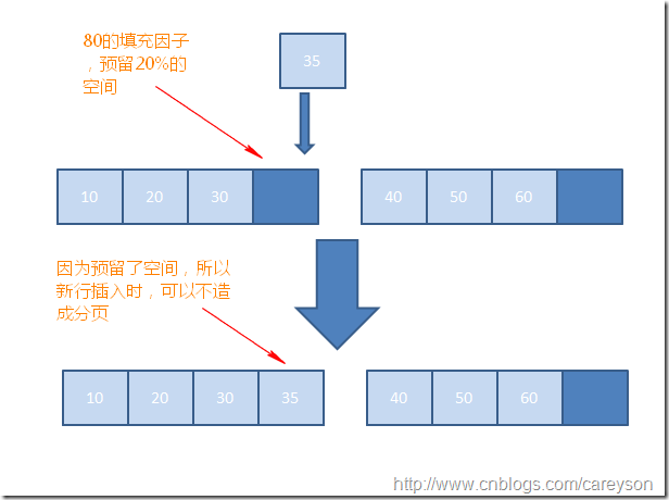 可以看出,使用填充因子会减少更新或者插入时的分页次数,但由于需要更多的页,则会对应的损失查找性能.