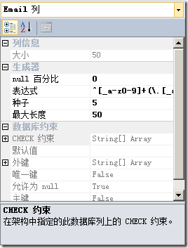下面,我为Employee表的几个列数据进行指定,Name列,我指定最小长度为4,最大长度为6.Gender列只允许有两个值,男和女.而Email按照正则表达式,生成符合Email地址规范的值: