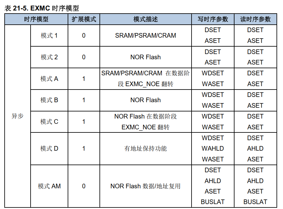 8.   sram_timing_init_struct.asyn_access_mode = EXMC_ACCESS_MODE_A; //模式A,异步访问SRAM
