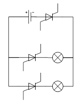 前一张图,分支开关有绝对的控制权;后一张图中开关中有一个二极管,开关的开合用于控制二极管的极性,总开关的作用就是:把开着的关掉,把关着的打开。