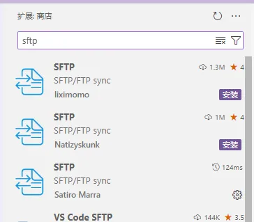 1. 打开vscdoe2. 在扩展搜索sftp,点击第一个安装