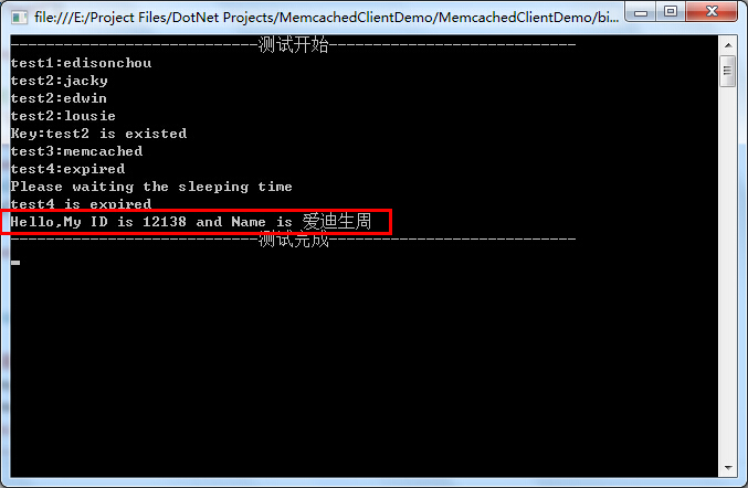 ④使用客户端为我们提供的各种读写API方法进行读写测试,如Set、Get、Replace、Add可以进行数据的添加和修改,而KeyExists则可以判断服务器中是否含有指定Key的数据,Delete则提供了删除指定Key的接口。这里,大家可以通过看代码就可以理解,我就不多废话了。大家可以注意到有个数据过期时间的可选参数,当数据在服务器中存储了一定时间后就会失效,这个参数相当有用。