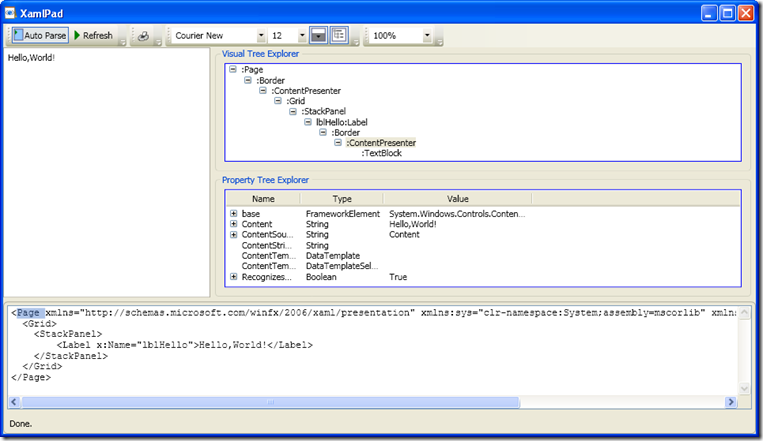 在visual studio的命令行中输入xamlpad就可以进入如下的界面: