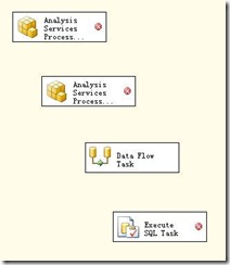下面来看SSIS项目。在SSIS包里建立四个任务模块,类型分别如下: