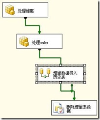 前两个多维数据集处理模块是用来处理多维数据集的,数据流负责把增量事实表的数据导到历史事实表中,最后执行一个SQL任务把增量表中的数据删除。