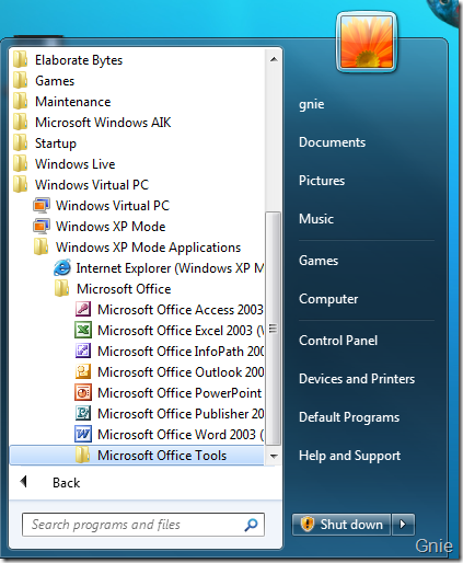 这样就可以在Windows 7 中任意运行Windows XP的程序了,在XPM中安装一个Office 2003看看Win7 有什么变化: