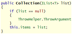 而当我们通过"base"追踪到Collection的构造函数时,发现它也只不过是把参数简单地赋值给类型为IList的私有成员,而不是像List那样做个浅拷贝: