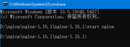 (6)找到nginx服务器所在的文件夹,输入start nginx