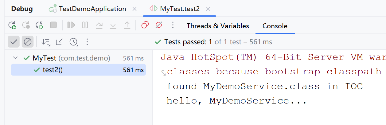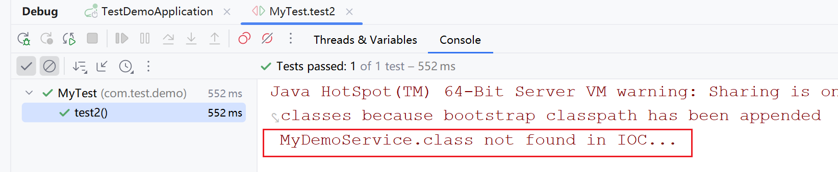- System.err.println(" MyDemoService.class not found in IOC... ");
