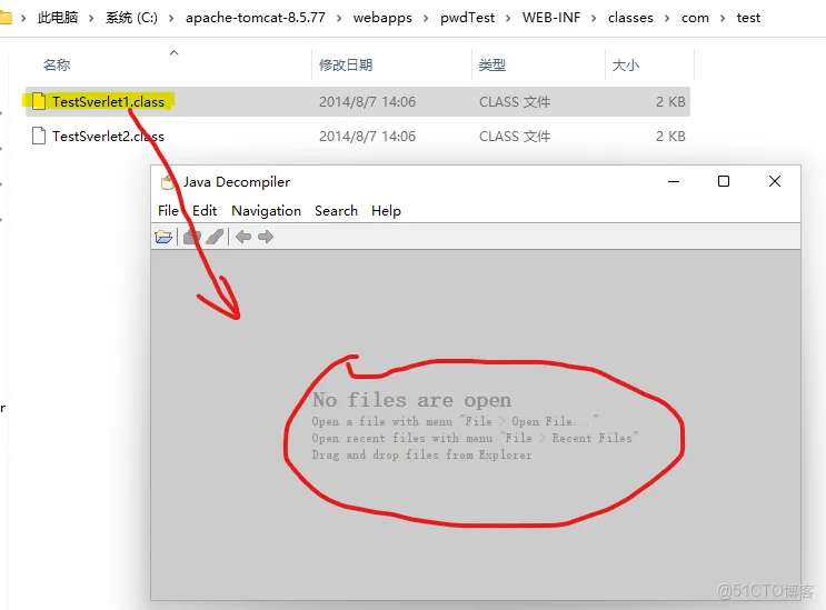 看到war包正常解压,使用java反编译工具,反编译一个class文件试试,发现不能反编译,是空的!