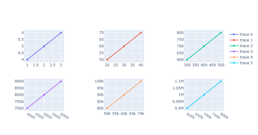 - go.Scatter(x=[600000, 700000, 800000], y=[900000, 1000000, 1100000]), row=2, col=3