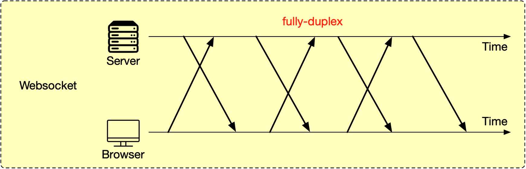 • 适用场景:聊天室、在线游戏、协同编辑等 高实时双向交互 需求