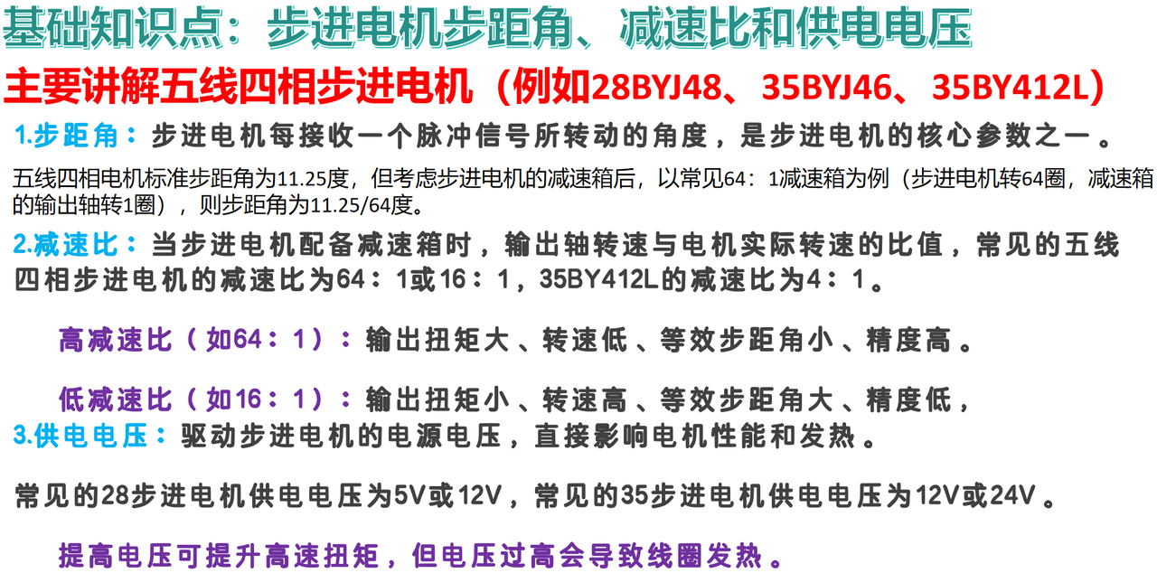 - 用于控制5线4相步进电机(如28BYJ-48)的运动控制,支持三种驱动模式和两种运动方式。