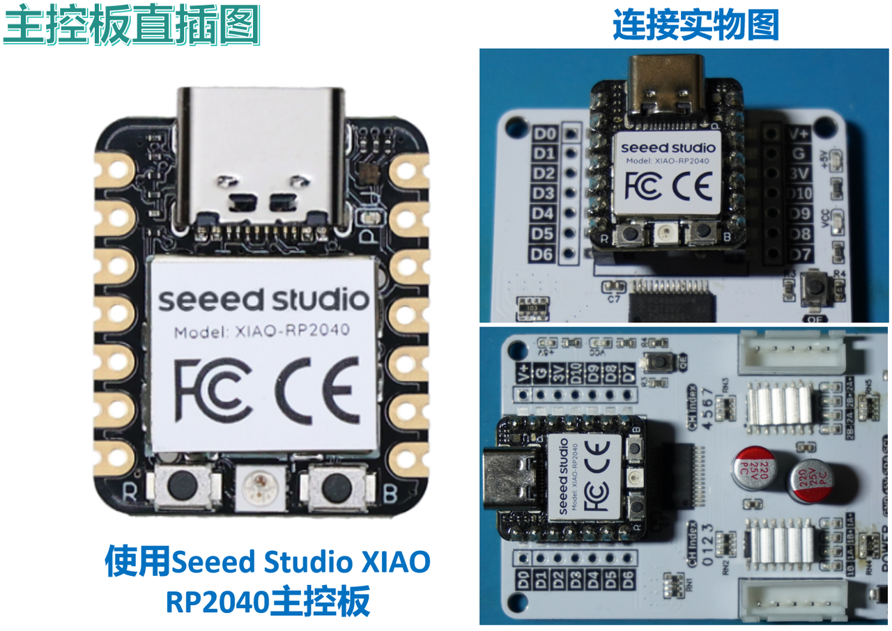 - 小尺寸设计:可以与 XIAO 系列主控板、Adafruit Qt Py 系列主控直接连接,也可以作为独立模块使用。