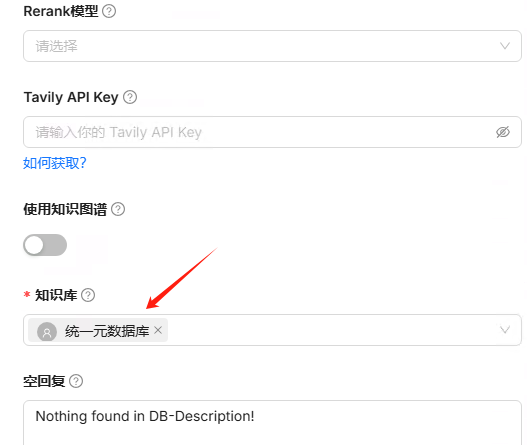 “DB_Description” 组件则选择 统一元数据库知识库,为 Agent 提供数据库表和列的语义信息,帮助其更好地理解用户的问题。