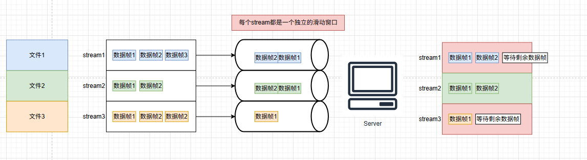 QUIC则是给每个Stream都分配了一个独立的滑动窗口,这样使得同一个连接数的多个Stream之间没有依赖关系,互联独立控制滑动窗口,从而实现真正意义上的多路复用。