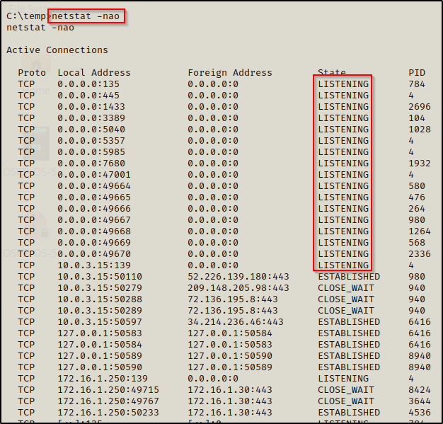 网络状态:】在网络枚举过程中要查找的最后一件事是检查正在运行的服务以及分配给它们的端口。