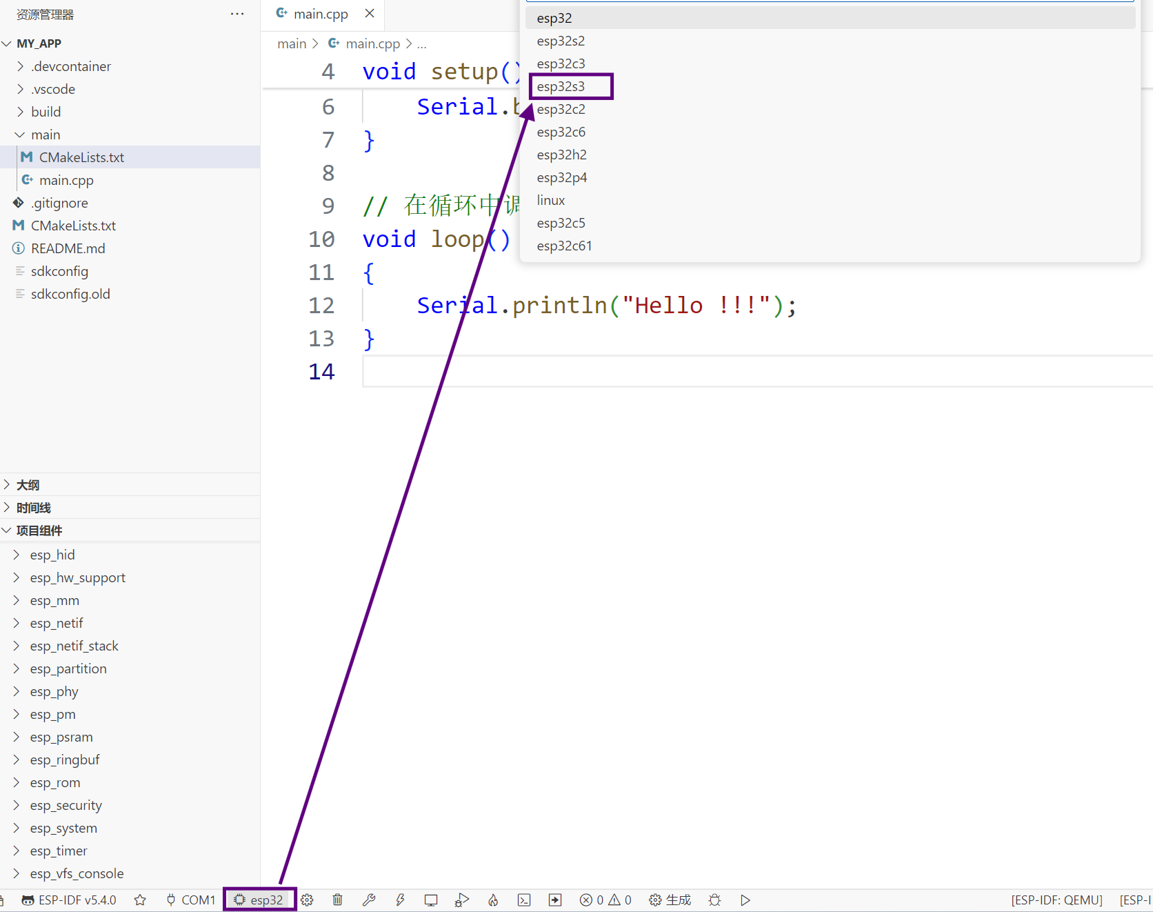 idf_component_register(SRCS "main.cpp"                    INCLUDE_DIRS "."                    REQUIRES                        esp_timer                        esp_netif                        arduino-esp32)然后,再编译一次。这一次可以成功编译了。