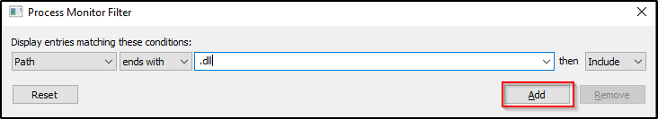 为了能更直观地理解这一点,我们将返回管理员 GUI 界面,并再次运行 Procmon。但这次,我们将添加一个过滤器,以查看程序是如何处理丢失的 DLL。
