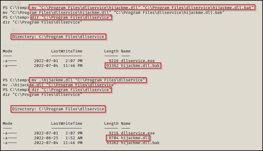 - mv .\hijackme.dll "C:\Program Files\dllservice"