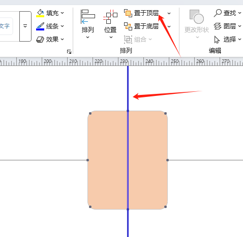 然后想根据矩形中间进行对齐,或对其他形状添加连接点时都可以,从标尺处拉取水平参考线和垂直参考线