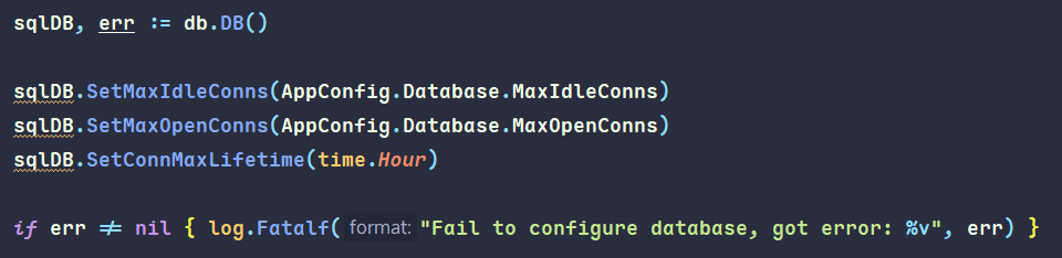 - log.Fatalf("Fail to initialize database, got error: %v", err)