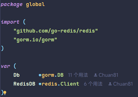 其定义在/global/global.go,从其和global.RedisDB右边的用法量就可以知道其作为全局变量的重要性了