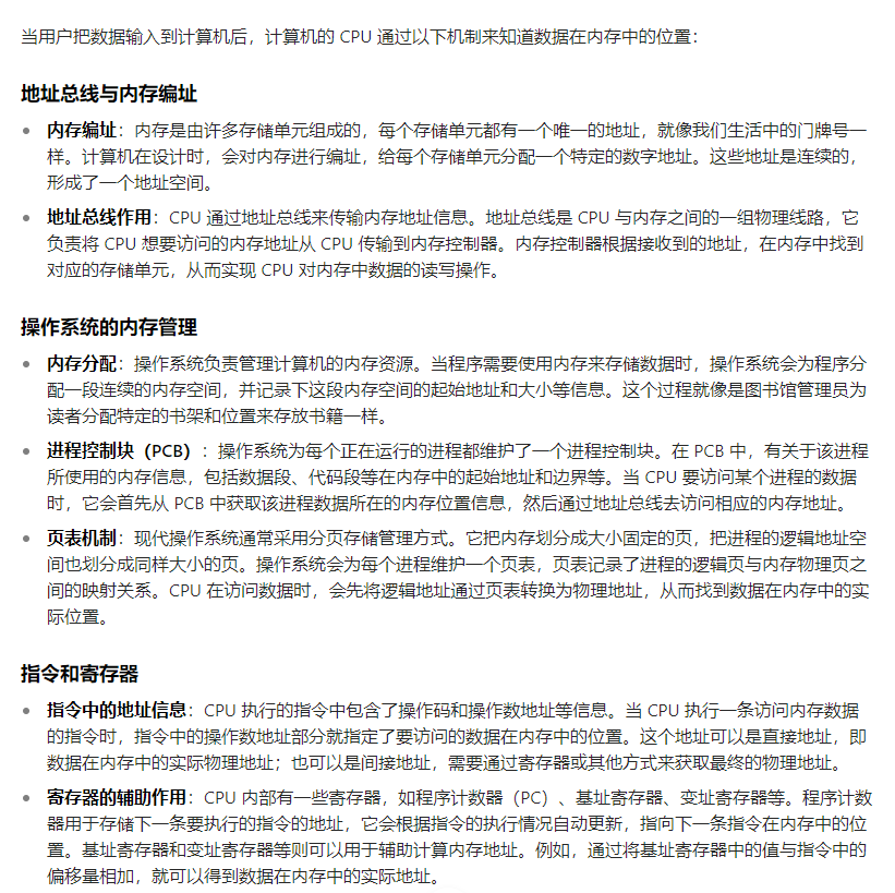 • 数据输入到计算机之后,计算机的CPU是如何知道数据存放在内存的位置?