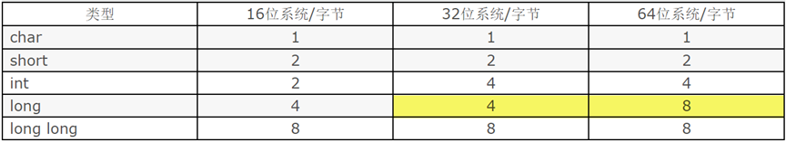 C语言标准中规定使用关键字long来表示长整型,一般长整型的全称是long int,只不过写程序的时候可以只写long即可,在32位系统下long长整型占4字节,在64位系统占8字节