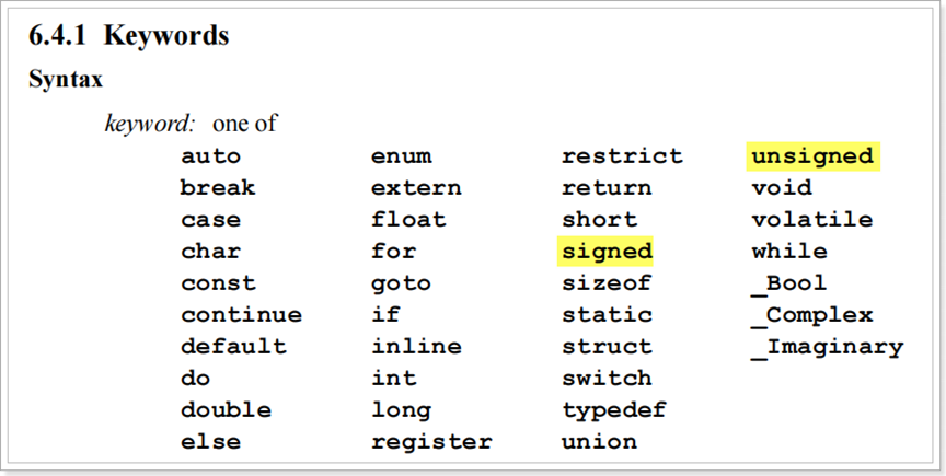 • 程序是给人看的,这些关键字是用于提高程序可读性的,另外这些关键字也是说明数据的宽度的(占几个字节)
